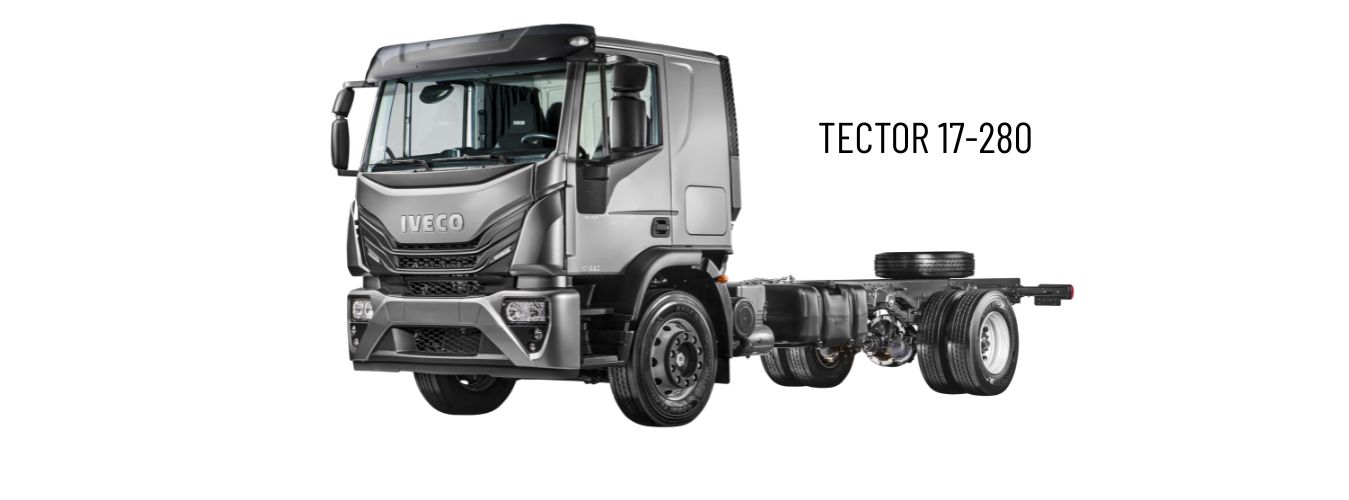 O IVECO Tector 17-280 é um caminhão semipesado 4x2 projetado para operações que exigem mais potência e torque, mantendo eficiência e robustez para aplicações urbanas e rodoviárias.